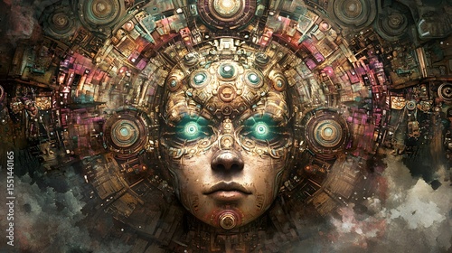 Futuristic Robot Portrait on Abstract Background