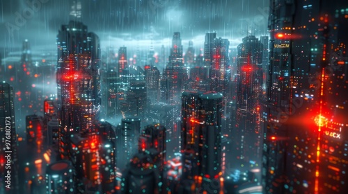 Futuristic sci-fi background with a digital world and virtual reality simulations
