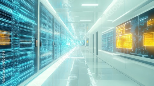 Futuristic Server Room with Glowing Data