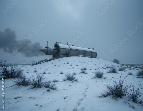 Futuristic Steam-Powered Machine in a Snowy Wasteland