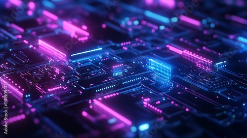 Futuristic Technology Background with Neon Lights and Circuit Board Details in Blue and Pink : Generative AI