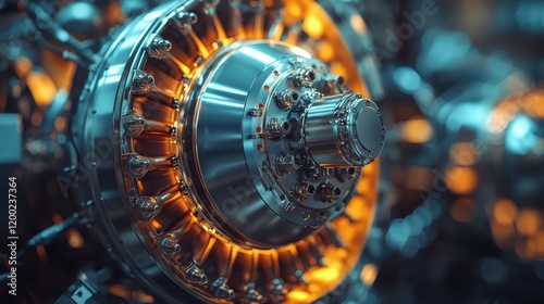 futuristic, turbine, engine, design, metallic, technology, innovation, mechanical, industrial, machine, power, energy, engineering, intricate, detail, precision, glowing, illuminated, component, steel, copper, gear, rotating, symmetric, advanced, modern, complex, technical, machinery, dynamic, science fiction, streamlined, robust, aerodynamic, cutting edge, propulsion, manufacturing, rotor, shiny