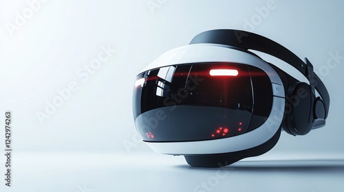 Futuristic Virtual Reality Headset Sleek Design White and Black VR Goggles with Red Lights