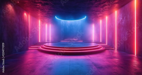 virtual, television, show, background, stage, set, futuristic, event, conference, three-dimensional, news, television, modern, broadcast, live, product, artistic, tech, launch, design, geometry, lighting, dynamic, platform, monitor, media, video, template, interview, performance, sport, photoshoot, motion, science, exercise, graphic, talk, business, neon, high contrast, aesthetic, creative