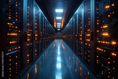 Futuristische Serverräume mit leuchtenden Datenströmen und modernster Technologie