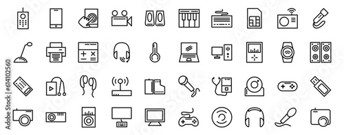 gadget icon set, display icon pack, electronic icon set, multimedia icon set, line icon