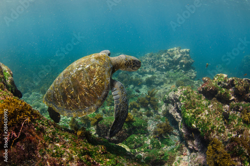 Galapagos Green Sea Turtle (Chelonia mydas agassizi) underwater, Galapagos Islands, Ecuador, Endemic Subspecies