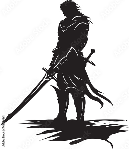 Gallant Guardian Knight Soldier Raised Sword Emblem in Black Graphic Royal Blade Black Logo Design with Knight Soldiers Raised Sword Vector