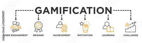 Gamification banner web icon vector illustration concept with icon of user engagement, reward, achievement, motivation, learning, and challenge