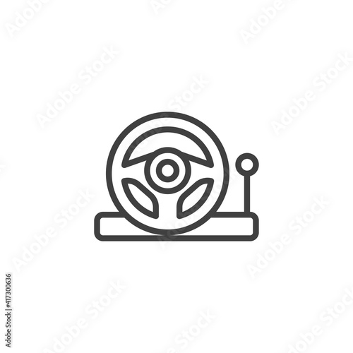 Gaming steering wheel line icon. linear style sign for mobile concept and web design. Steering wheel game controller outline vector icon. Symbol, logo illustration. Vector graphics