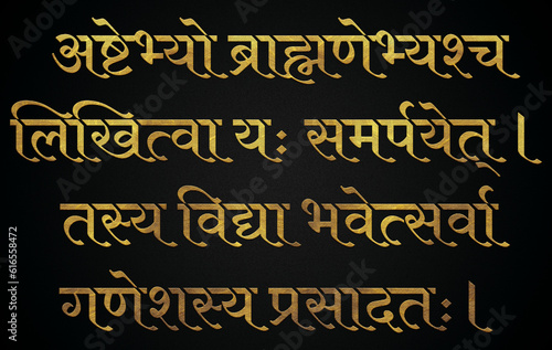 Ganesh chaturthi shlok 7 golden hindi & sanskrit calligraphy design banner, sankat nashan ganesh stotram, lord vinayak.