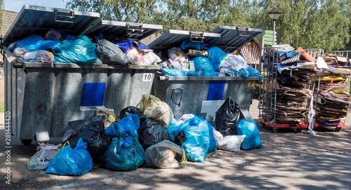 garbage containers that are full of garbage