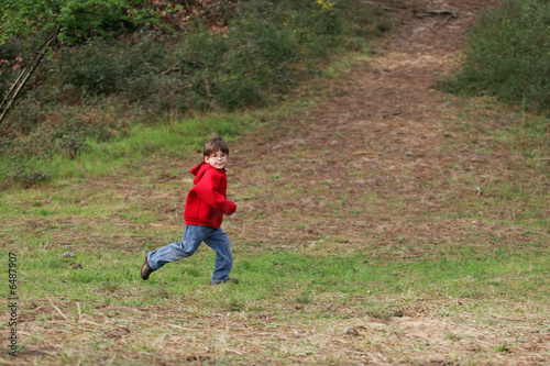 garçon entrain de courir dans les bois