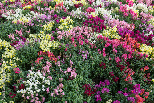 Garden with coloful flowers in springtime
