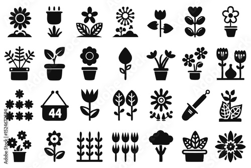 gardening, icon, flower, editable, stroke, outline, transparent, background, icon, set, floral, design, plant, botanical, garden, element, spring, summer, clip art, graphic, isolated, single, black, yellow, cyan, magenta, illustration, iconography, symbol, nature