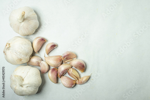 Garlic close-up on white background.