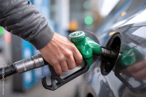 gas, pump, car, fuel, hand, filling, inserting, grey, closeup, day, neutral, calm, station, everyday
