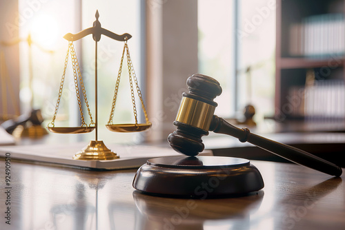 Gavel striking a sound block, symbolizing a court decision, with legal documents and scales of justice in the background.