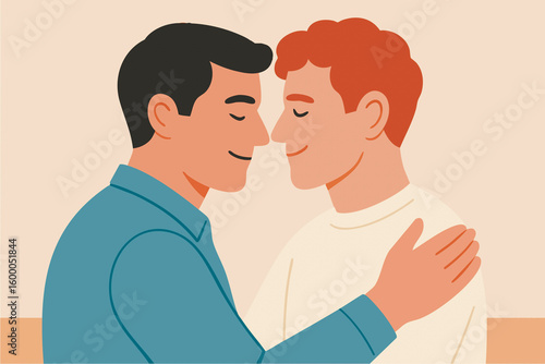 gay, couple, embracing, affection, intimacy, illustration, digitization, technology, lesbian, people, communication, romance, support, eye, closed, togetherness, convenience, affectionate, love, romantic, tenderness, peace, compassion, falling, emotion, nobody, human relationships, graphic, digital, image, art, expression, warmth, connection, positive, trust, closeup, bonding