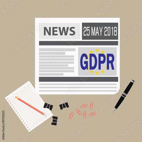 GDPR may 25, 2018 Business news in the newspaper on the table with office tools .GDPR Vector illustration