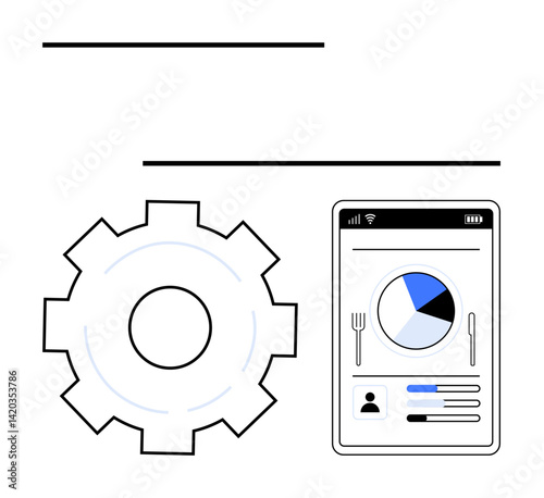 gear, mobile, phone, screen, pie chart, datum, food, profile, technology, integration, user, interface, planning, meal, tracking, app, development, display, chart, progress, concept, application, metaphor, business, abstract, flat, web, simple, blue, black, system, performance, connection, monitoring, efficiency, innovation, productivity, optimization, tech, menu, dashboard, vector, illustration, icon