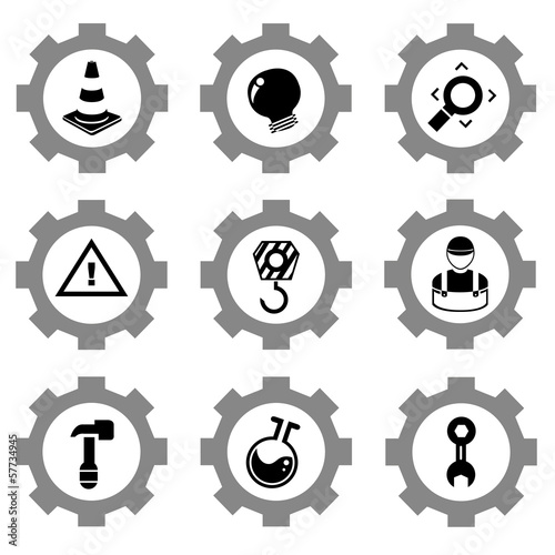 icon, tool, vector, cone, process, gear, symbol, idea, machine, set, hook, search, light bulb, technician, magnifying glass, apparatus, wrench, machinery, hardware, construction site, engineering, signs, hammer, black, tube, creating, building, equipment, illustration, industrial, safety, operator, thinks, professional, operation, mechanic, constructor, staff, work, silhouette, man, construction, laboratory, under construction, metal, creation