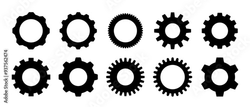 Gear set. Black gear set. Gear setting vector icon. Gear wheel isolated on white background