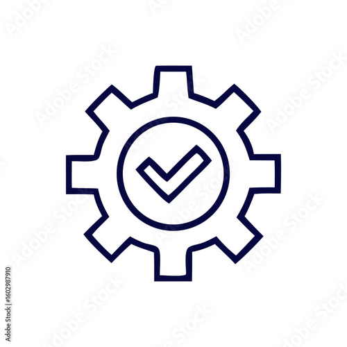 gear, checkmark, check, mark, tick, approved, confirmation, success, completion, process, operation, mechanism, engineering, mechanic, industry, technology, solution, agreements, quality, performance, efficiency, control, management, symbol, icon, outline, vector, graphic, design
