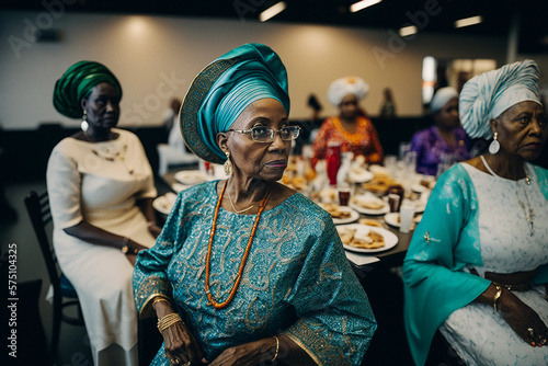 headgear, bead, woman, people, wrinkle, bangle, 8, dress, food, drink, plate, chair, ring, light, green, group, ai