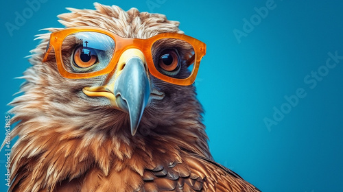 eagle, sunglasses, avian, majestic, style, trendy, cool, confidence, sophistication, nature, fashion, bird of prey, wildlife, predator, vibrant, colourful, feather, eye-catching, powerful, iconic, striking, protection, wing, beak, talon, flying, blue skies, sunny, glamour, modern