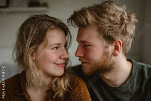 couple, love, romance, human relationships, comfort, cosy, warmth, connection, intimacy, happiness, affection, togetherness, home, weekend, relaxation, bonding, joyful, laughter, smile, tenderness, hugs, companionship, closeness, young, old, age, diversity, casual attire, contentment, trust, security, friendship, soulmate, partner, life, peaceful, quiet, harmonious, serenity, indoor, gentle, romantic, lifestyle, generative, ai