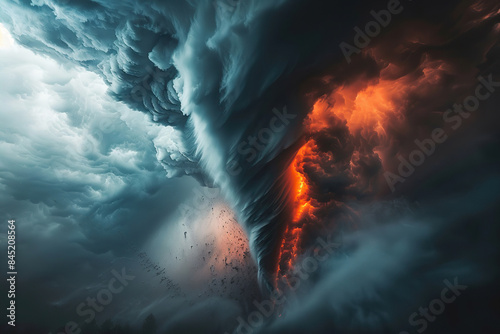 Generative ai on theme of scary ominous huge hurricane tornado, apocalyptic dramatic background