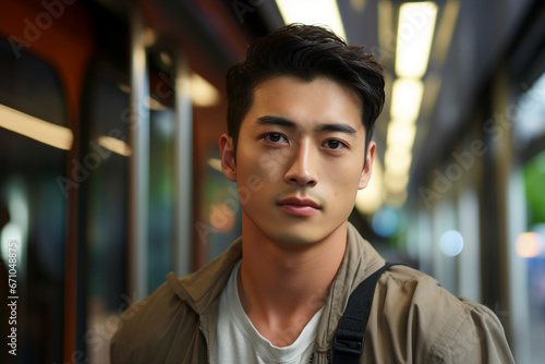 Generative AI portrait of traveler person using public transport have trip tourist subway train bus