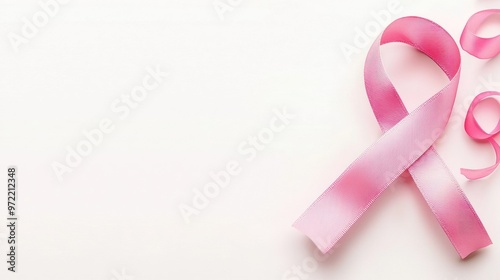 Gentle Pink Ribbon of Hope: Breast Cancer Awareness in Light Art Style on Wide Blank Background, Generative Ai