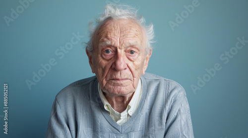 Gentle Serenity - Studio Portrait of Kind Elderly Man in Pastel Blue Setting