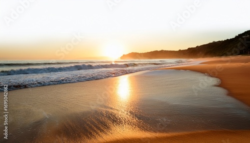 gentle waves lapping on a sandy beach at sunrise isolated on white background