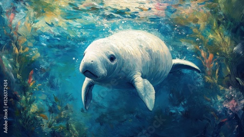 Gentlemanatee: majestic manatee swimming in vibrant underwater seascape