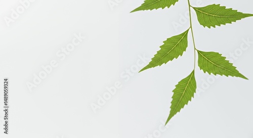 Gently Swaying Neem Leaf with Visible Veins Against Clean White Background in Hyperrealistic Style Perfect for Decoration and Symbolize Earth Day