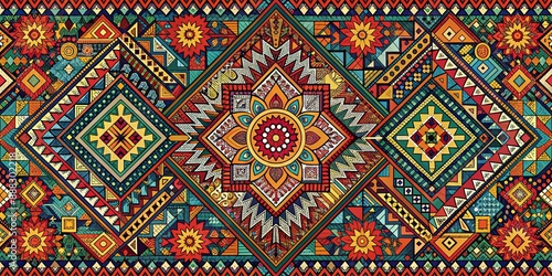 Geometric Abstract Mosaic with Floral Elements, Geometric Art , Abstract , Mosaic , Design