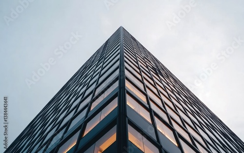 building, architecture, modern, geometric, facades, window, illuminated, city, urban, night, dusk, light, structure, design, contemporary, glasses, metal, skyscraper, landscape, city landscape, real, estate, property, commercial, business, office, exterior, low, angle, perspective, sharp, angle, grid, line, texture, tone, dark, light, contrast, warm, cool, evening, twilight, shadow, silhouette, abstract, minimal, photo, architectural