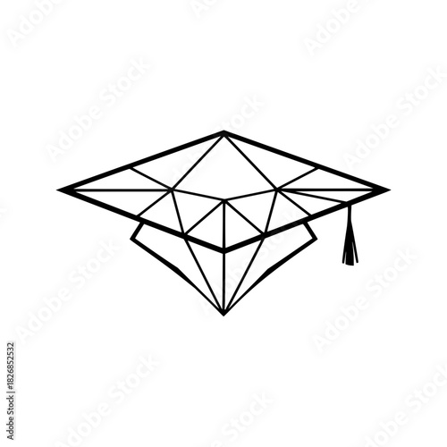 graduation, cap, mortarboard, diamond, gem, crystal, geometric, abstract, shape, line, outline, minimalist, modern, design, symbol, education, academic, degree, achievement, success, tassel, cognition, wisdom, study, university, college, school, art, black, monochrome