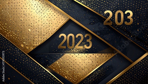 new year, 2023, gold, geometric, abstract, design, background, celebration, event, festive, luxury, elegant, sparkle, glistering, dark, blue, black, pattern, texture, greeting