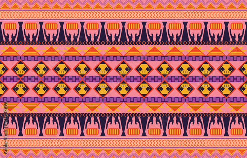 Geometric oriental tribal ethnic pattern traditional background Design for carpet,wallpaper,clothing,wrapping,batik,fabric,Vector illustration embroidery style.