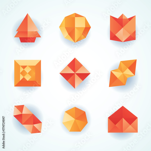 Geometric Origami Shapes Collection in Orange and Red Tones