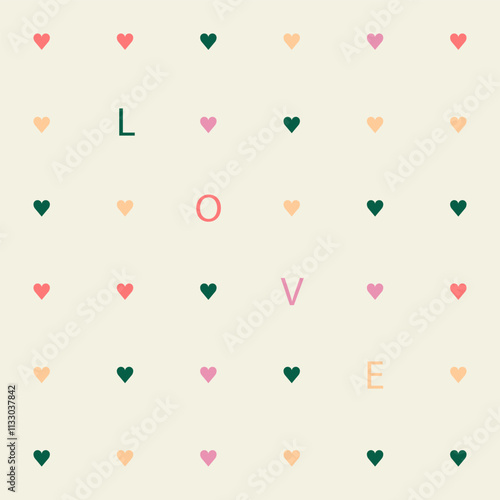 Geometric seamless pattern with cute hearts and word Love, for background, wrapping paper, fabric, website, cards, banner. Valentine's Day concept