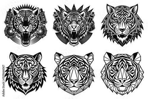 Geometric Tiger Head Illustrations Six Unique Designs for Art, Prints, and Tattoos