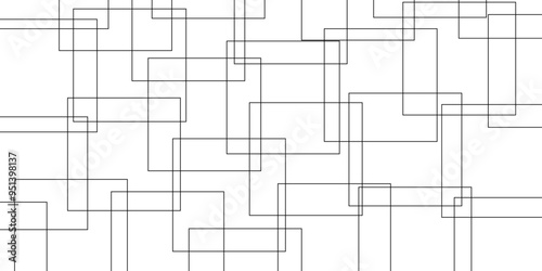 Geometric white background with black rectangle shape strokes lines pattern texture. seamless random chaotic digital line business concept. abstract black stroke lines vector background.