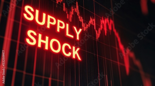Geopolitical Tensions Effects Concepts. Bright red digital text "SUPPLY SHOCK" displayed on a dark financial graph background symbolizing economic disruption.