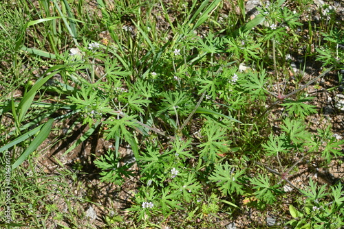Geranium carolinianum flowers. A Geraniaceae weed native to North America. It produces pale purple flowers from May to June.