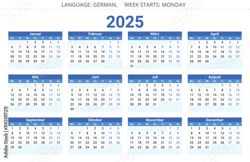 2025, calendar, german, year, german, german, printable, month, vector, illustration, business, new, date, monthly, time, annual, german, german, yearly, plan